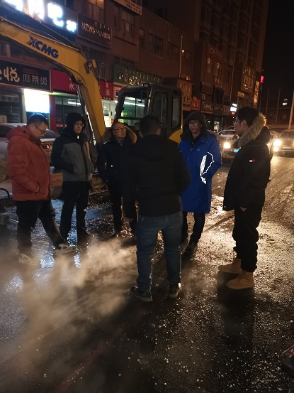 19日晚上10時(shí),歷經(jīng)15個(gè)小時(shí)搶修完畢。搶修結(jié)束后,搶修師傅們從挖開的坑里出來(lái)后,身穿的工作服上沾滿了泥漿,衣服也被熱氣蒸濕了,時(shí)值寒冬,室外溫度零下16℃,衣服很快被凍硬。一位剛從坑里出來(lái)打著哆嗦的搶修師傅告訴筆者,管道里水的溫度近90°,溝里熱氣騰騰,身上都冒汗呢,但一出地面,100多度的溫差,感覺直接就凍到骨頭里了,腿都凍直了,邁不了步。