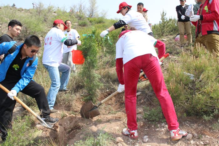 植樹活動現場,來自公司機關、橋靠分公司、三合村分公司、金橋分公司、辛家營分公司的32名青年志愿者和其他直屬團委的志愿者們參加了此次活動的啟動儀式。隨著團市委書記成紅亮同志宣布活動啟動,公司青年志愿者們在團委副書記郭振宇的統一帶領下,有序的加入到植樹活動的行列中,個個熱情洋溢、干勁十足,有的運樹苗,有的揮鍬,有的扶樹,有的培土,還精心地把土踩實,并為它們澆灌生命之水。各個環節銜接有序,樣樣做得認真到位,個個忙得滿頭大汗,到處都是忙碌的身影和勞動的歡聲笑語。經過大家一上午的共同努力,種下了28株充滿生機和希望的樹苗。