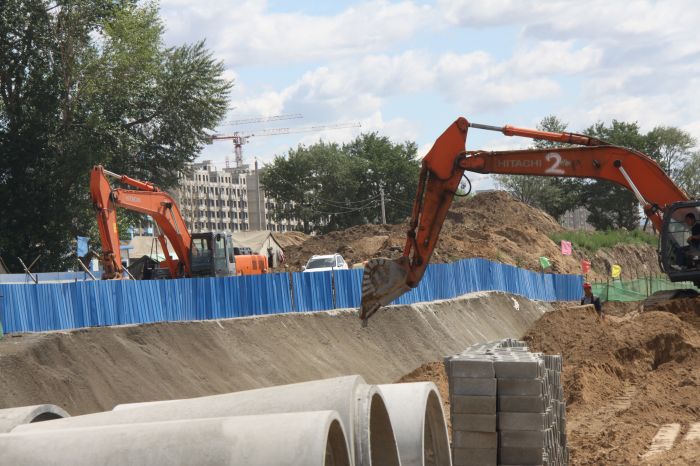海拉爾東街雨、污管道鋪設(shè)施工現(xiàn)場。張亞利攝