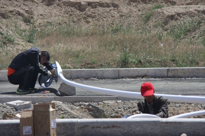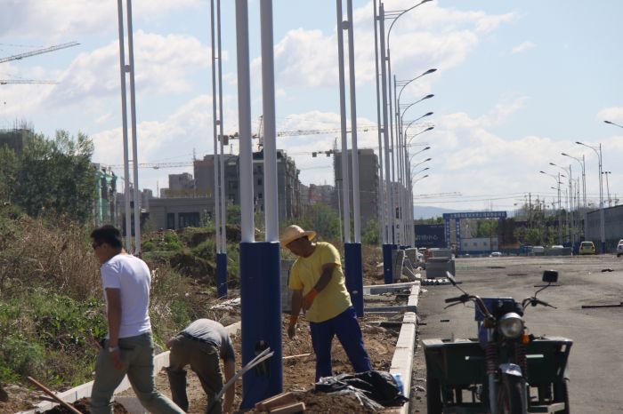 哈拉更西路路燈安裝現(xiàn)場。張亞利攝