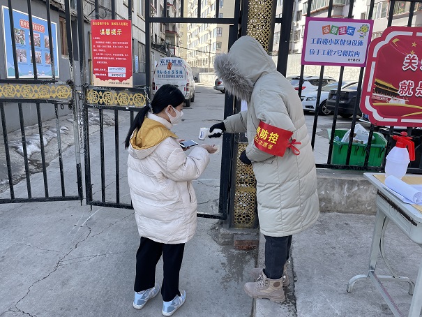 "沒事兒,天氣冷我堅持堅持就過去了,只希望疫情能快點兒結束。"2月28日下午,筆者在電子廠小區北口見到了正在寒風中執勤的新華東街分公司員工高晶晶。交談中筆者了解到,她每班要在這里堅守六個小時,沒有帳篷、也沒有取暖設備,看著她凍紅的雙手,聽著她沙啞的聲音,筆者叮囑她要多喝水,高晶晶說:"我這里離衛生間還有一段距離,所以我盡量不喝水,以免漏檢一人。"
