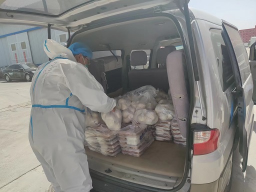 物流公司項目管理處負責人周峰,承擔本次疫情防控物資生活保障工作,負責園區內的物資收發工作,1000余人一日三餐的分發,他處處以身作則、任勞任怨、認真負責、每餐分發都親力親為。盤內一分鐘,廚房更用功。隔離期間,他與廚房工作人員緊密配合,根據被隔離人員提出的意見和建議,不斷調整飯菜品種、營養搭配,讓隔離人員不但要吃得飽、還要吃得好。疫情防控期間,累計為被隔離人員和防疫工作者提供12597份快餐。