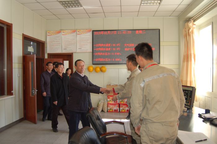 臘月二十九,黨委書記、總經(jīng)理張瑞平,黨委副書記、工會主席張永,黨委委員、副董事長杜雄勇,黨委委員、副總經(jīng)理史繼文4人率隊,分別到四個供熱分公司,深入車間、運(yùn)營所、收費(fèi)大廳、熱力站,對一線員工進(jìn)行了慰問。(文/亞利)
