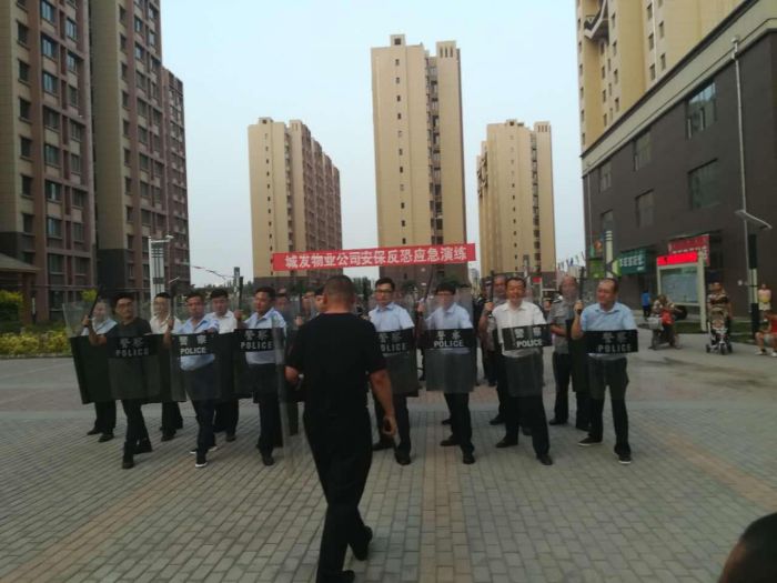 城發(fā)物業(yè)公司于2017年7月18-19日,在惠新苑公租房物業(yè)項(xiàng)目處,組織開展了安保反恐應(yīng)急演練。