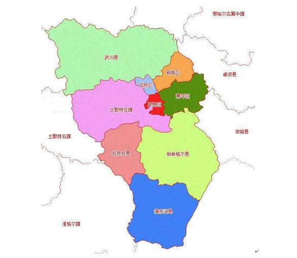 圖 1-1 呼和浩特市行政區劃圖