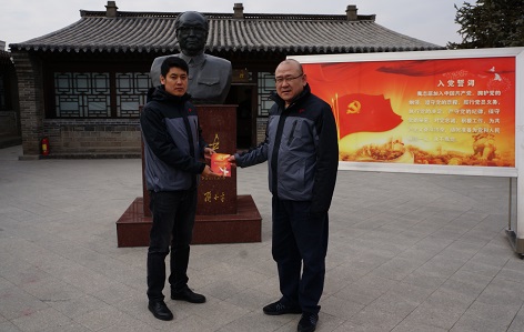 參觀結(jié)束后,物流公司黨支部在烏蘭夫同志銅像前合影留念,同時,給黨員趙慧明同志過了“黨員政治生日”,大家面對鮮紅的黨旗重溫入黨誓詞,更加明確了共產(chǎn)黨人的初心和使命。