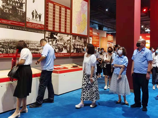 在展覽館,大家認真聽取講解,交流思想體會,回顧了我們黨矢志踐行初心使命、篳路藍縷奠基立業、創造輝煌、開辟未來的一百年,更加深刻認識到紅色政權來之不易,新中國來之不易,中國特色社會主義來之不易。